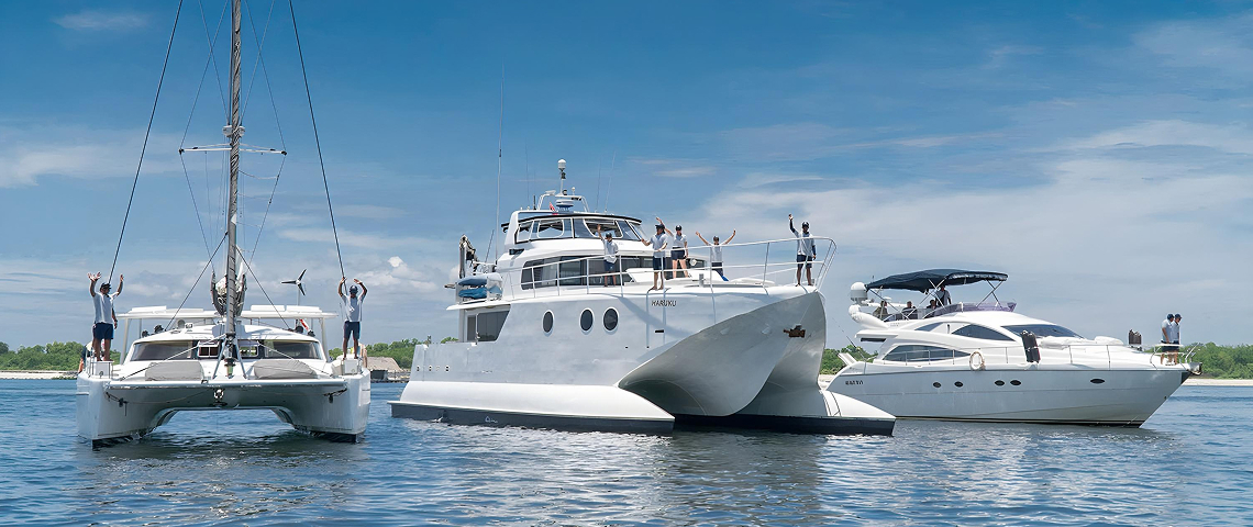 Haruku is a 73 ft/22 m dual hull cruise catamaran with broad & spacious decks ideal for up to 30 guests to enjoy a fantastic day or sunset cruise, or an overnight charter.